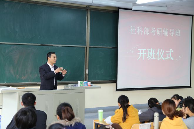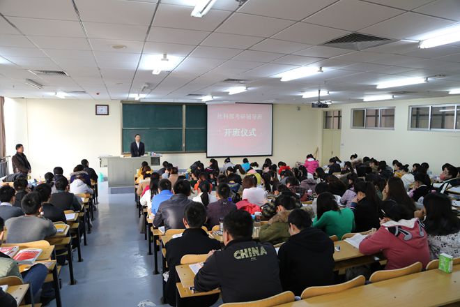11月16日上午8点30分,社科部免费考研辅导班正式启动,开班仪式在北湖校区203教室举行。社科部主任、直属党支部书记秦建中在开班仪式上作了简短的讲话。他首先代表社科部对参加此次培训的230名学员表示热烈的欢迎,然后介绍了本次活动的目的、意义,并提出了要求。他要求全体学员,一是要珍惜学习机会。社科部曾经成功举办过考研辅导班,但近些年一直未办。时值党的群众路线教育实践活动,为进一步贯彻教育实践活动精神、推进活动的深入开展,社科部直属党支部精心组织策划了这次活动。社科部为此做了充分的准备,精选了优秀的教师授课、设计了教学方案;二是要遵守学习纪律。本次活动共发放免费听课证230张,涉及临床、护理、精神、口腔、公卫、食品安全等院系,学员们来自不同的院系,在这里组成了一个新的班集体。希望大家要共同遵守学习纪律,保持良好的学习秩序,做到上课不迟到早退、手机关机;三是要加强联系沟通。不但要在学习过程中跟老师充分沟通交流,在考研后,也要保持联系,汇报成绩。社科部将对本次考研辅导班的效果进行跟踪调查,并关注和期待着每一位同学考研后胜利的消息。