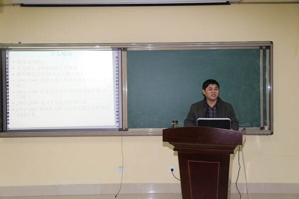 1月7日,由科研处主办、社科部协办的国家和省级社科基金标书撰写技巧的学术讲座在科技楼三楼泰山学者报告厅举行。学术报告邀请到了曲阜师范大学马克思主义学院孔德永教授。会前,党委委员、副院长赵敏对孔德永的到来表示欢迎,并向孔德永介绍了学校的基本情况,希望能在双方共同感兴趣的领域加强沟通与交流,建立良好的合作关系。报告会由科研处副处长刘传新博士主持。副院长赵敏、学校各院、系(部)分管科研的领导,社会科学部、外语系教师及各年级辅导员百余人参加了讲座。
