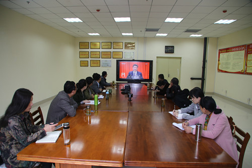 中国共产党第十九次全国代表大会18日上午在人民大会堂开幕。习近平代表第十八届中央委员会向大会作了题为《决胜全面建成小康社会 夺取新时代中国特色社会主义伟大胜利》的报告。大会开幕,举世瞩目。18日上午9:00,马克思主义学院全体党员在太白湖校区和日照校区共同守候在电视机前观看中国共产党第十九次全国代表大会开幕式实况,认真聆听习近平同志的工作报告,畅谈感受。
