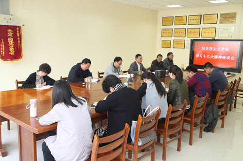 会上,秦建中带领全体党员学习了学校下达的《关于组织学习贯彻党的十九大报告精神的通知》,并解读了十九大报告主要精神,同时结合专家解读分析了十九大报告中的十二大亮点。与会教师结合自身实际展开讨论交流,谈体会、讲认识。大家一致认为,党的十九大是在全面建成小康社会决胜阶段、中国特色社会主义发展关键时期召开的一次十分重要的大会,马克思主义学院全体教师要切实把学习贯彻十九大会议精神作为当前和今后一个时期的一项重要政治任务,切实把思想统一到十九大报告精神上来,牢牢把握十九大报告的精神实质,要以新时代中国特色社会主义思想为指导,把立德树人作为根本任务,努力做好教学、科研等各项工作,真正发挥好大学生思想政治教育主渠道、主阵地的重要作用。