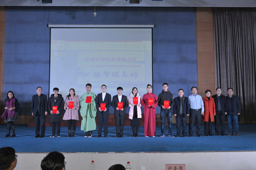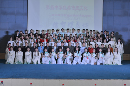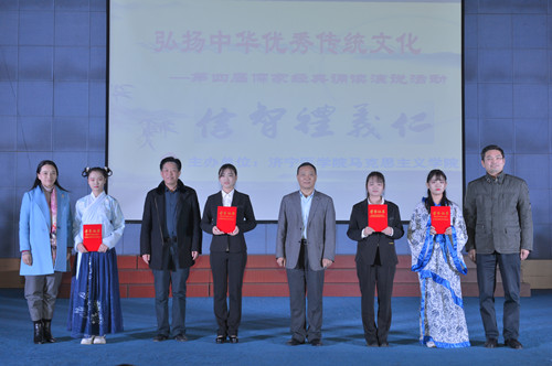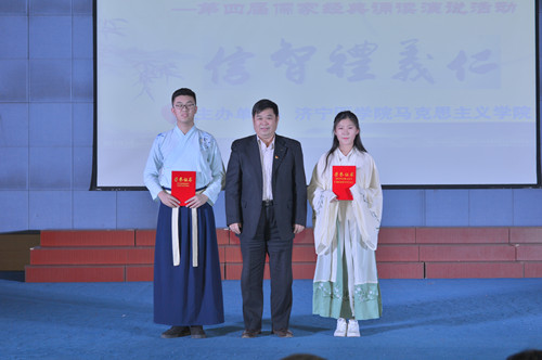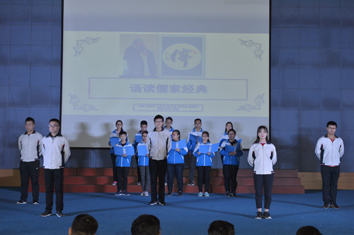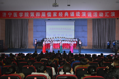 中华优秀传统文化是中华民族的精神命脉,是涵养社会主义核心价值观的重要源泉。在深入贯彻党的十九大精神和习近平新时代中国特色社会主义思想,全面落实《关于实施中华优秀传统文化传承发展工程的意见》,更好地引导青年特别是高校学生弘扬传承中华优秀传统文化,进一步增强中国特色社会主义文化自信。2017年12月20日,马克思主义学院在图文信息楼五楼学术报告厅举办了济宁医学院第四届“儒家经典诵读演说活动”汇演。学校副院长李建军及有关职能部门和二级学院的负责人与2017级500余名学生共同观看了本次汇演。