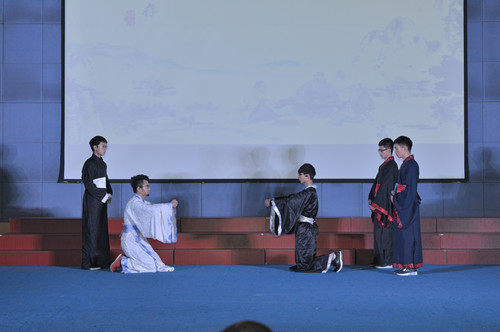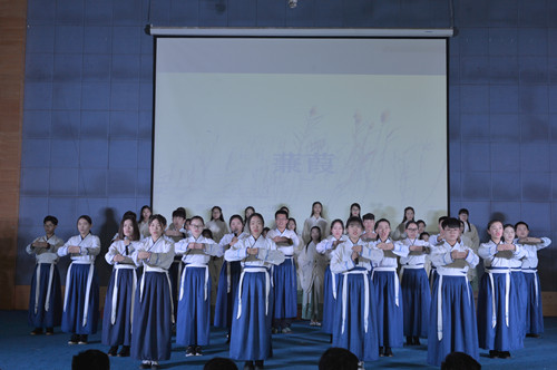 为大力弘扬中华优秀传统文化,培育和践行社会主义核心价值观,课程组把“中国传统文化教育”引入课堂,自2014年以来,马克思主义学院在《思想道德修养与法律基础》课,已成功举办了三届“儒家经典诵读演说活动”。为做好本次汇演,教研室要求学生每10人左右组成一组,自编自演儒家经典诵读节目,首先课堂上展演,然后从160个节目中选取了46个生动活泼的节目进行初赛,最后又从中选取了14个节目进行集中汇演。学生以诵读、舞蹈、歌舞、自编的小情景剧、舞台剧、话剧等生动活泼的形式,诠释了儒家文化经典,展示了中华优秀传统文化的博大精深。最后,护理学院中美合作二班本科六班的歌伴舞《蒹葭》和中美合作一班的舞台剧《在水一方》荣获一等奖。整个汇演历时2个半小时,现场气氛热烈,观众喝彩、掌声不断。本次活动使大学生进一步感受到中华优秀传统文化的魅力,增强了大学生对中华文化的认同感及民族文化的自信,为他们更好地学习和践行社会主义核心价值观提供了丰富的精神滋养。