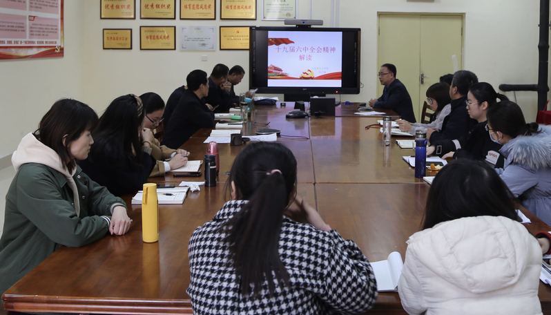 为深入学习贯彻党的十九届六中全会精神,引导全院教师更好从党的百年奋斗重大成就和历史经验中汲取智慧力量,12月10日下午,马克思主义学院举办专题宣讲活动,学习解读党的十九届六中全会精神与《中共中央关于党的百年奋斗重大成就和历史经验的决议》内容。宣讲活动由学校党史学习教育宣讲团成员、马克思主义学院党委副书记、院长毕于建主讲。