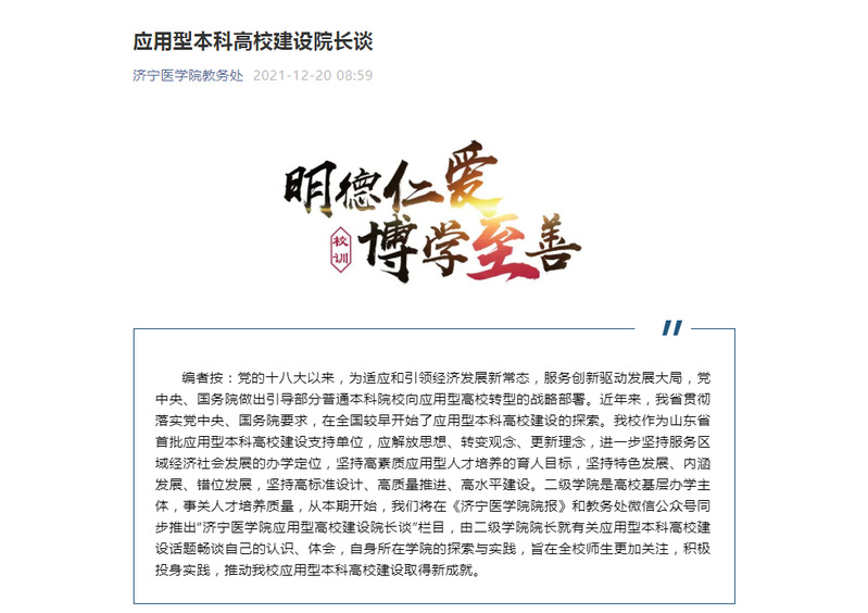 毕于建院长应约参加“济宁医学院应用型高校建设院长谈”栏目
