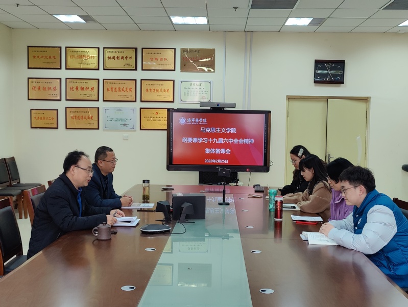 为深入学习宣传贯彻党的十九届六中全会精神,2月25日,马克思主义学院分别组织中国化马克思主义教研室和中国近现代史教研室在T555召开2022年新学期首次集体备课会,致力将党的十九届六中全会精神融入《毛泽东思想和中国特色社会主义理论体系概论》教学和《中国近现代史纲要》。备课会由马克思主义学院党委副书记、院长毕于建主持。