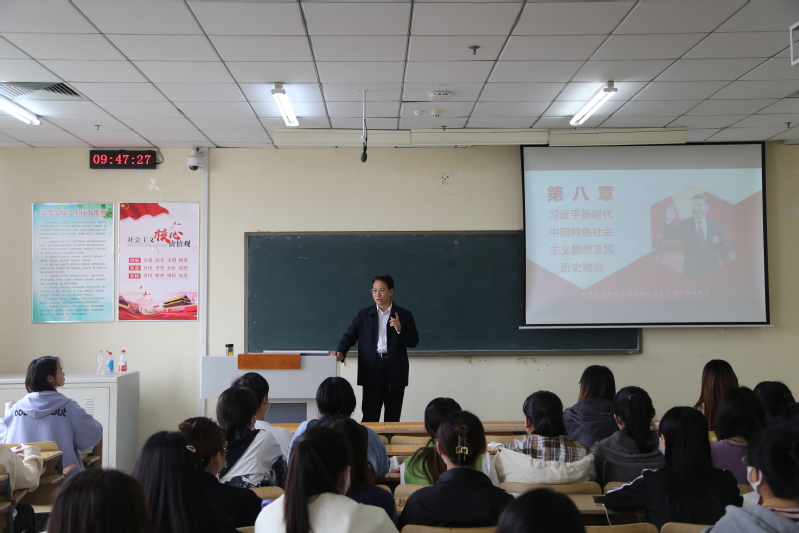 思想政治理论课是落实立德树人根本任务的关键课程,习近平总书记在中国人民大学考察调研时就思政课发表重要论述。为深入贯彻落实习近平总书记重要讲话精神,5月11日上午,党委书记高哲学深入思政课堂,听取《毛泽东思想和中国特色社会主义理论体系概论》课程教学;党委委员、副院长赵敏,党委委员、副院长兰迎春分别讲授《中国近现代史纲要》《毛泽东思想和中国特色社会主义理论体系概论》课程。