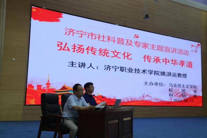 为落实《山东省社会科学普及条例》,进一步推动社会科学知识和中华优秀文化“双创”进学校工作,6月17日上午,马克思主义学院邀请济宁职业技术学院姚洪运教授、济宁医学院谢新清副教授在学术报告厅作专题报告。讲座由马克思主义学院党委副书记、院长毕于建主持。