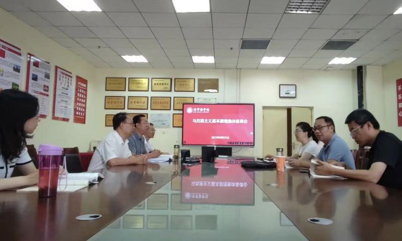 为深化教学改革,提升教学质量,扎实做好2023年秋季学期《马克思主义基本原理》(以下简称《原理》)课程教学工作,马克思主义学院原理教研室于8月25日开展新学期集体备课会。备课会由教研室主任李显朋老师主持,马克思主义学院院长毕于建及《原理》课济宁校区全体任课教师参加会议。