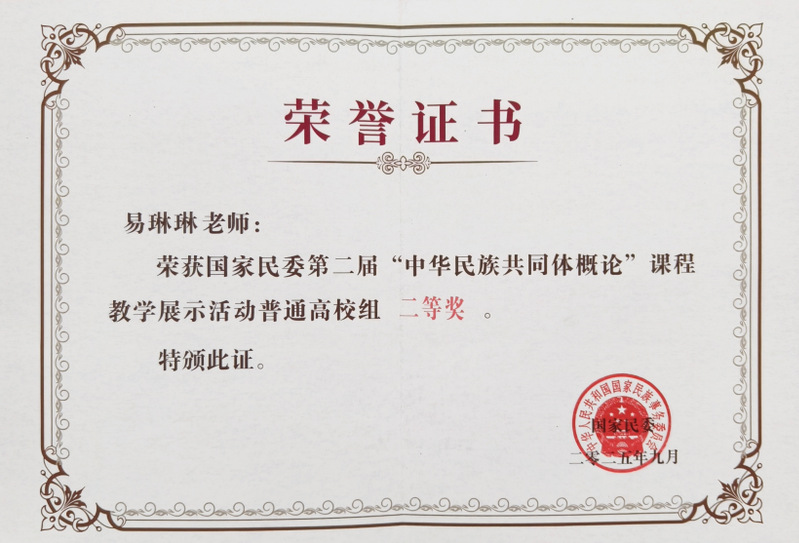 9月17日至19日,由国家民委主办、教育部协办、中南民族大学与高等教育出版社共同承办的第二届《中华民族共同体概论》课程教学展示活动在湖北武汉成功举办。我校马克思主义学院教师易琳琳在本次展示活动中荣获本科组二等奖。