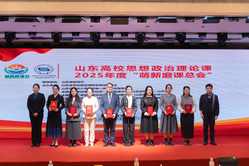 据悉,山东高校思想政治理论课“萌新磨课会”是由山东省教育厅指导,山东省学校思政课教学指导委员会等单位主办的高规格、高水平的重要赛事,旨在提升全省高校青年思政课教师的政治素养和业务能力,扎实推进全省高校思政课改革创新,助力实现教师队伍高质量发展。2025年度“萌新磨课会”经过校内初选、线上初赛与现场展示三个环节选拔,最终来自全省本科和高职院校的33名教师入围总决赛。
